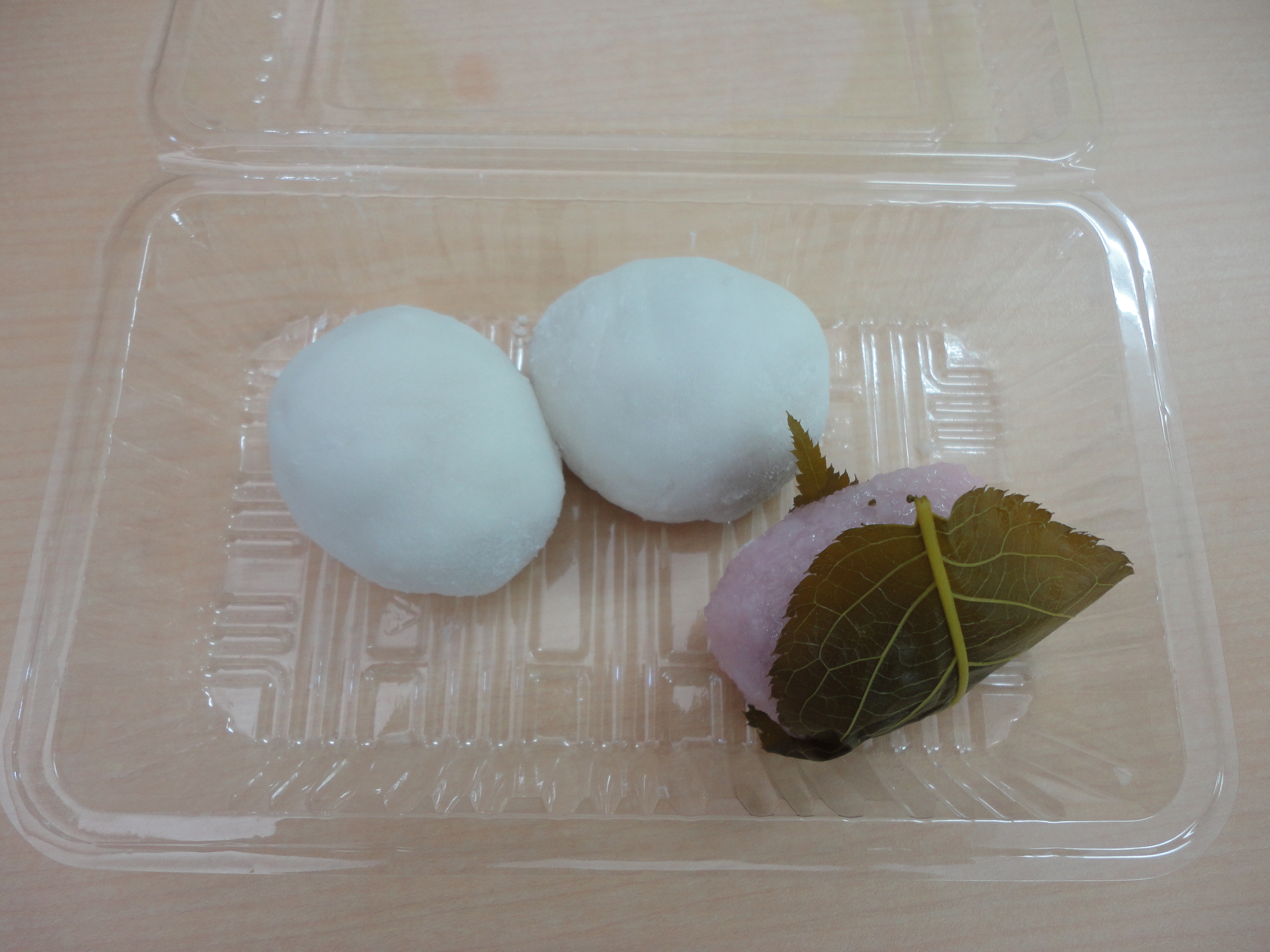 写真は、事務員さんからいただいた「いちご大福」と「さくらもち」