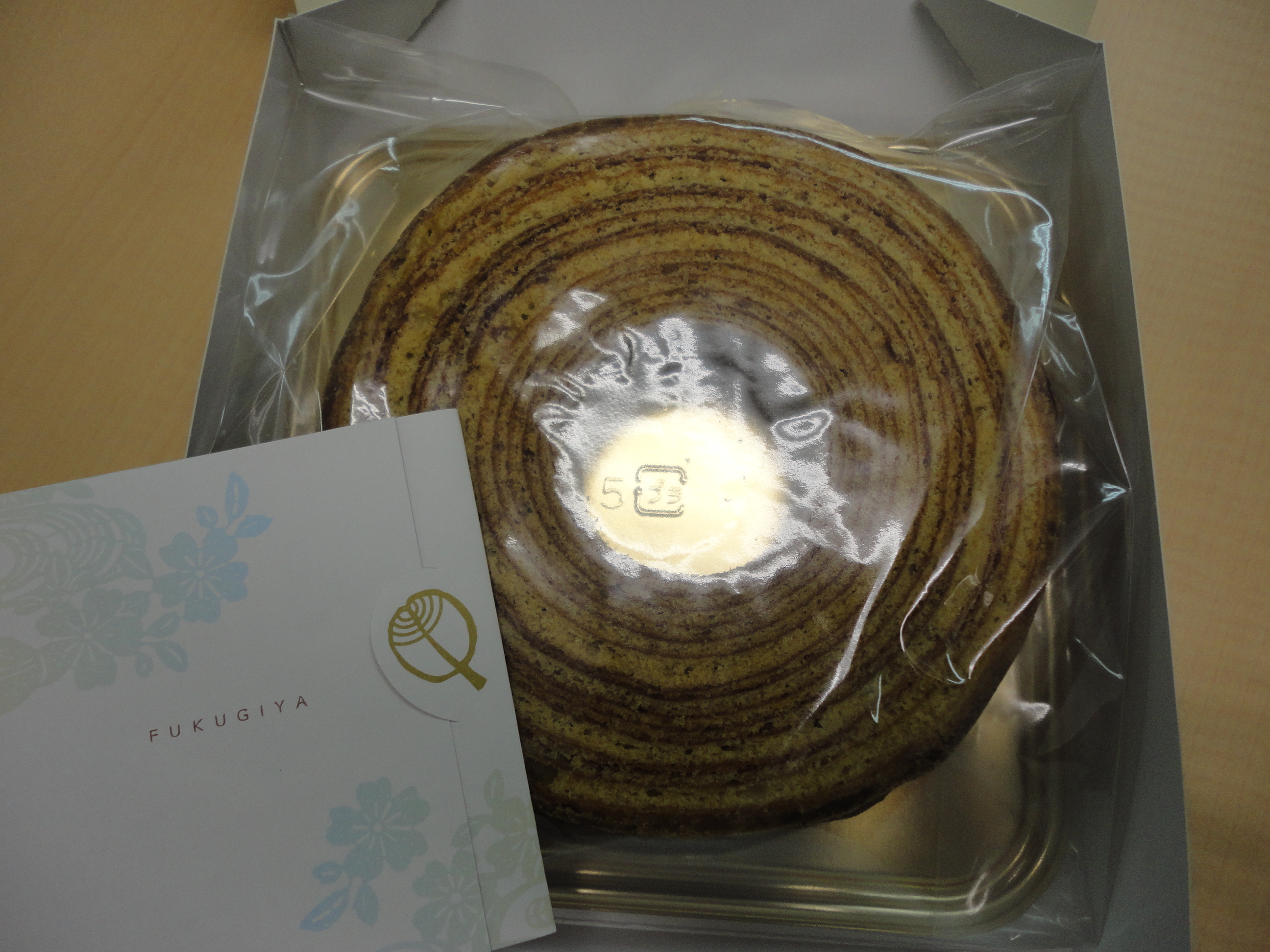 今日のおやつは、事務員さんが買ってきてくれた黒砂糖のバームクーヘンです。
